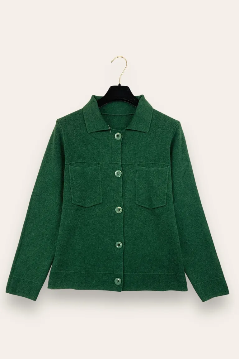 Descrizione Giacca in maglia con tasche frontali e colletto