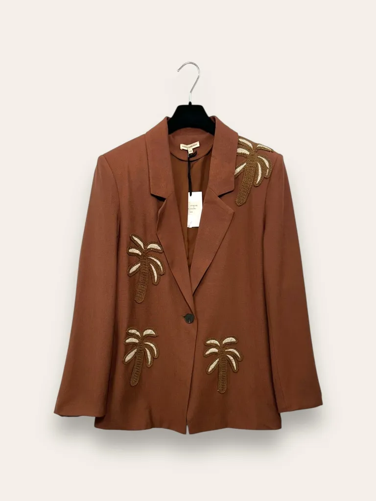 Descrizione Giacca over misto lino con palme ricamate