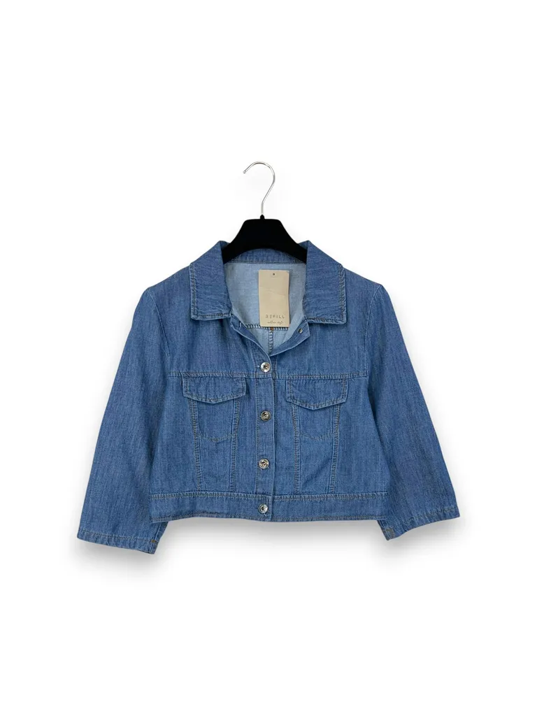 Giacca crop in chambray