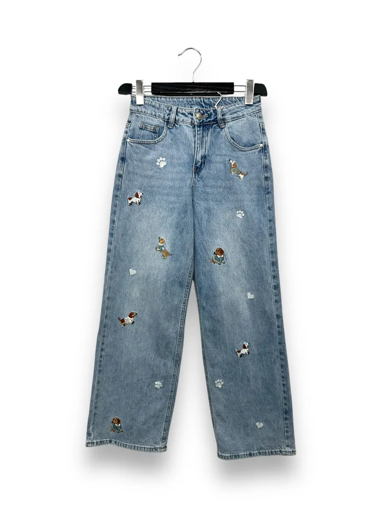 Descrizione Jeans a gamba deitta con cagnolini ricamati