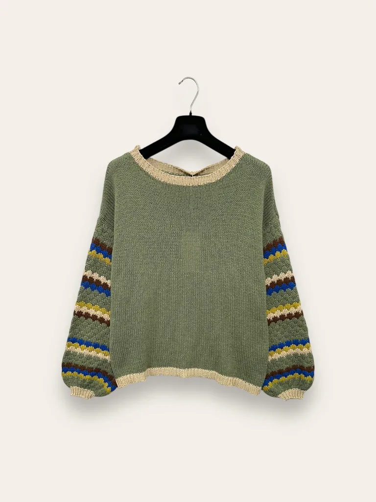 Descrizione Maglia con maniche a sbuffo e motivo a righe ondulate multicolore