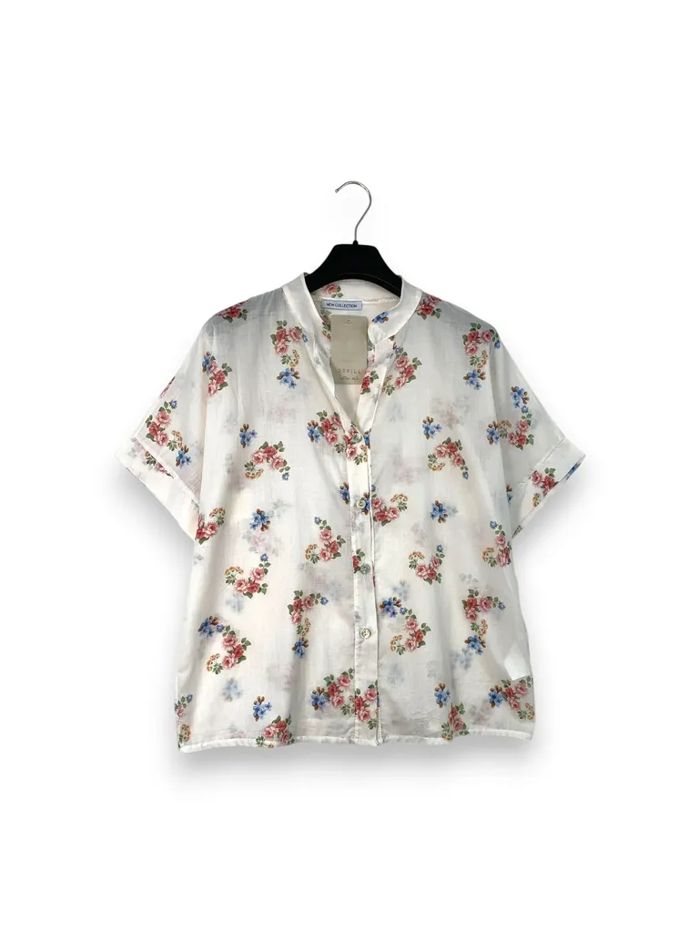 Descrizione Camicia alla coreana manica corta in fantasia