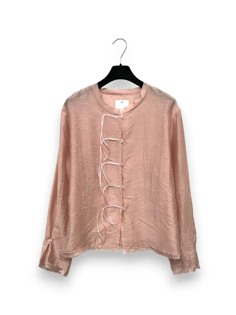 Descrizione Blusa girocollo con chiusura orientale misto lino