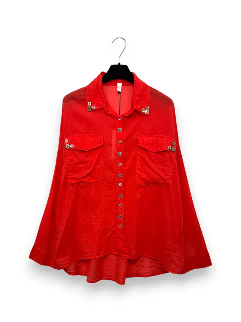 Descrizione Camicia over in mussola di cotone con bottoni decorativi