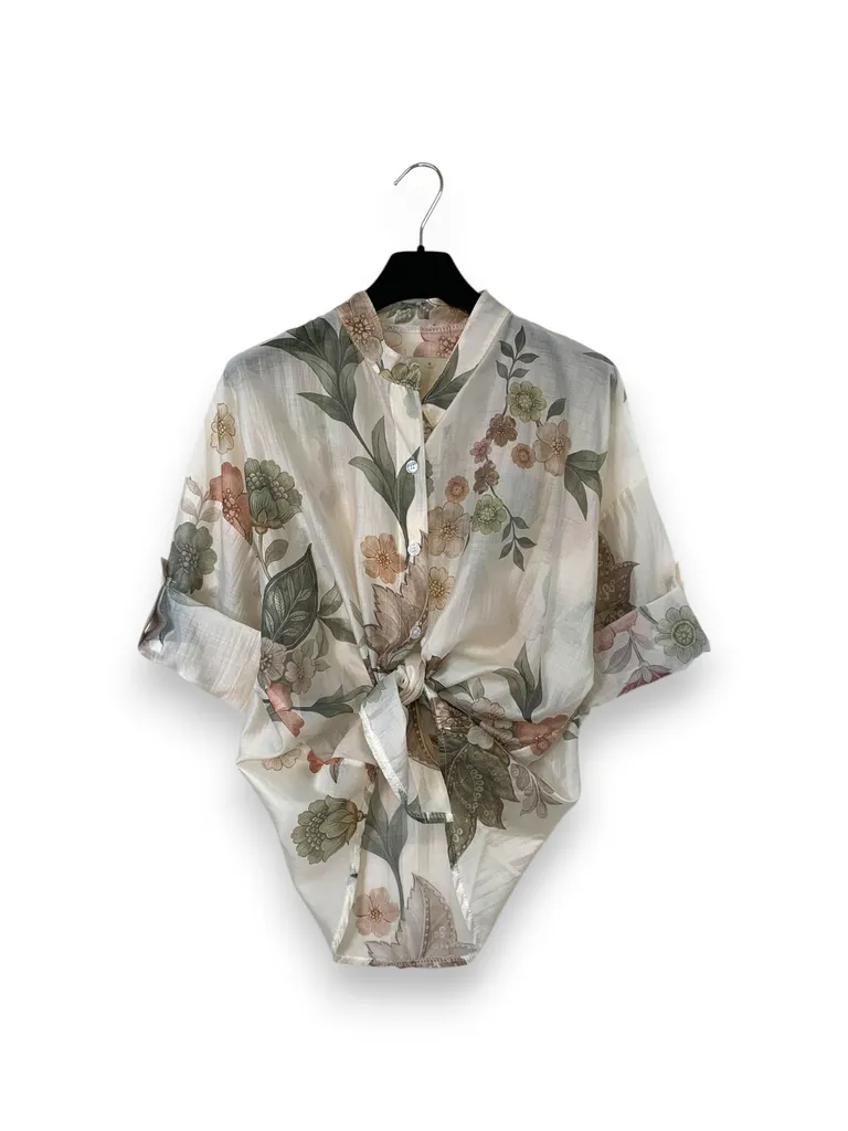 Descrizione Camicia alla coreana misto tencel in fantasia