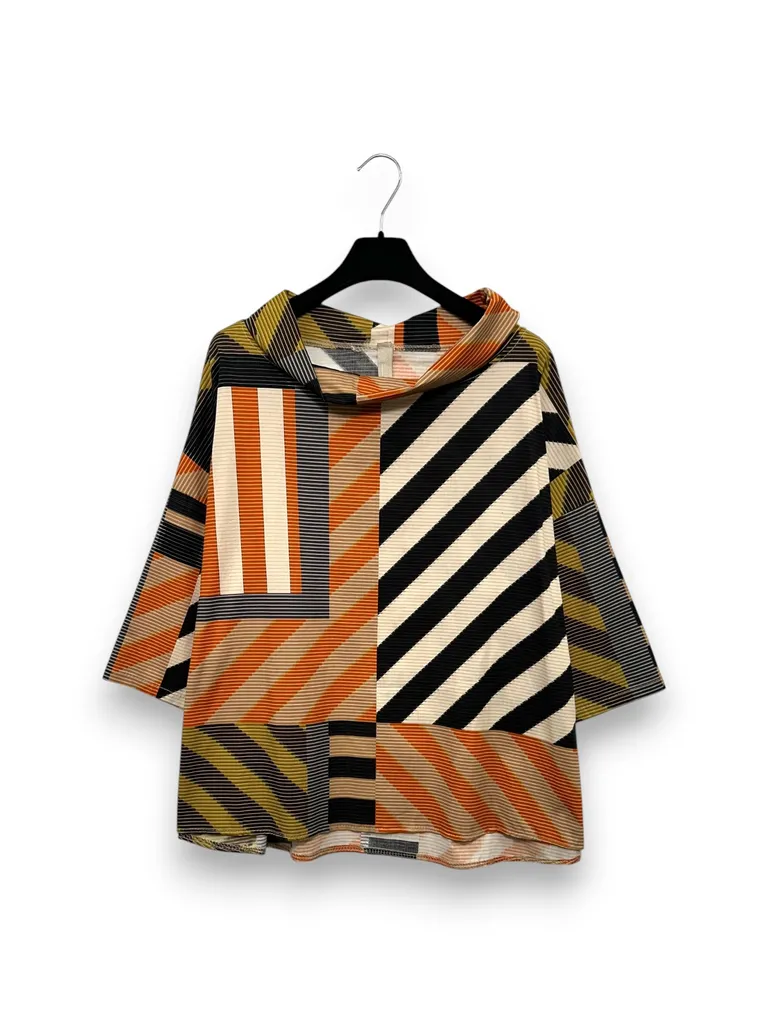 Descrizione Blusa over con collo a ciambella, fantasia optical