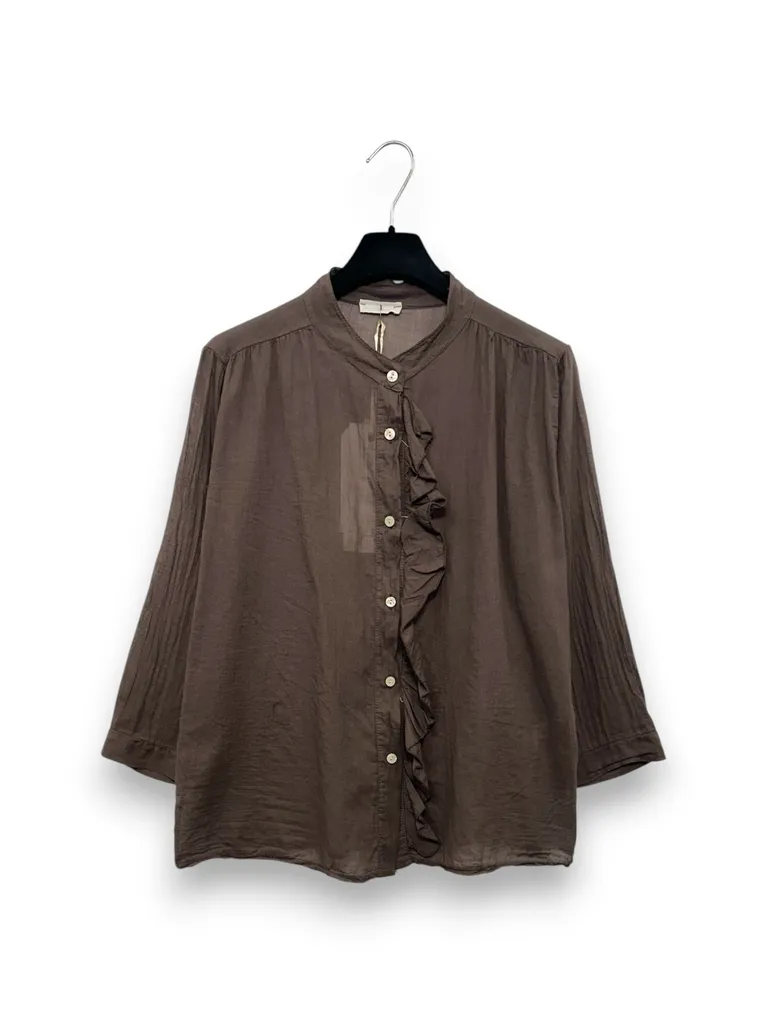 Descrizione Camicia coreana in mussola di cotone, con volant