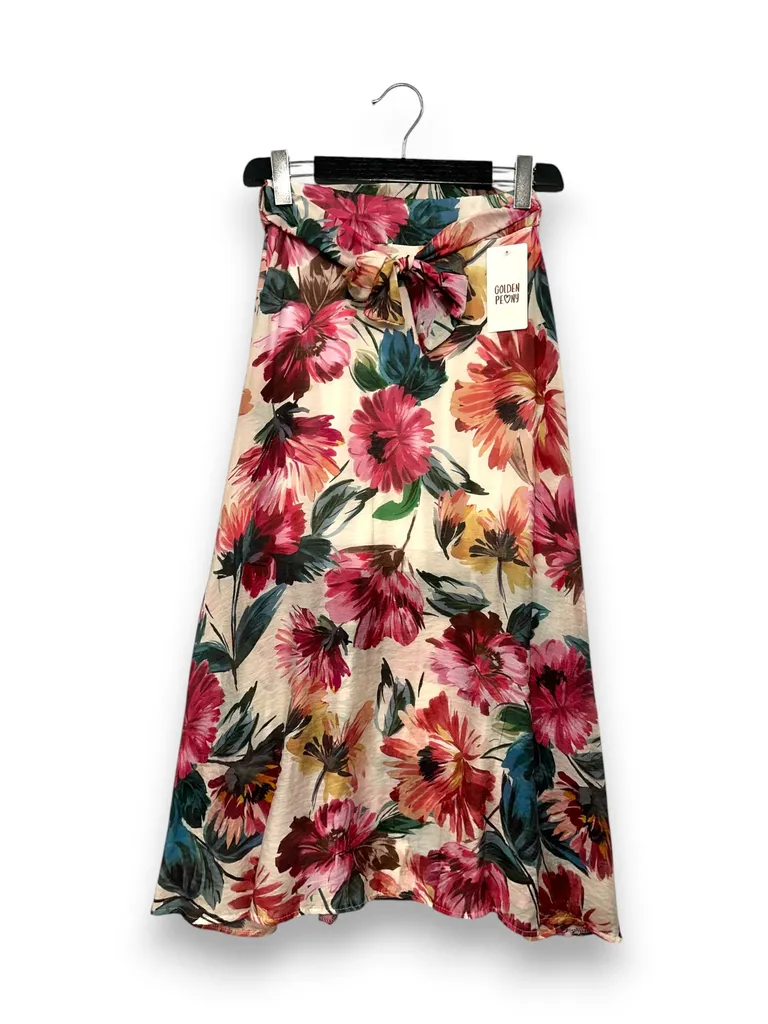 Descrizione Gonna midi svasata, fantasia floreale