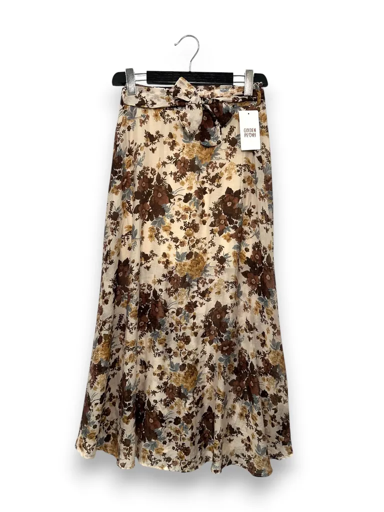 Descrizione Gonna midi svasata, fantasia floreale