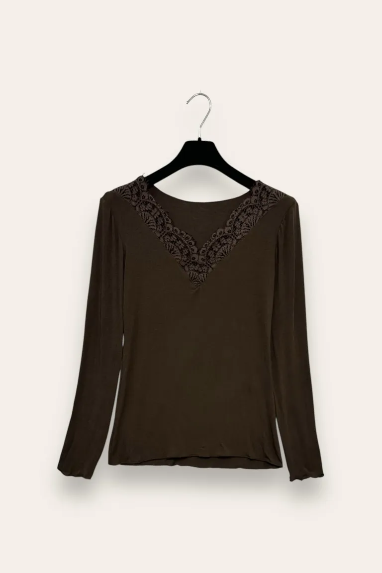 Descrizione Maglietta basica misto cashmere con pizzo al girocollo