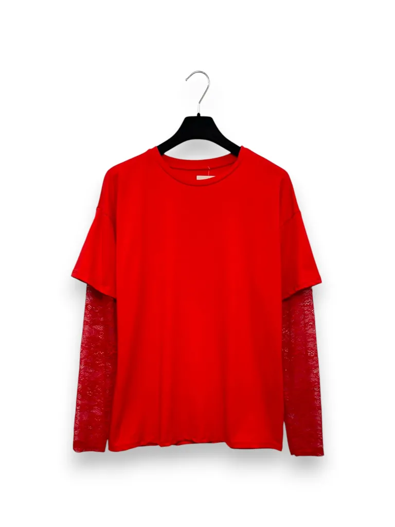 Descrizione T-shirt con manica lunga in pizzo con ricami