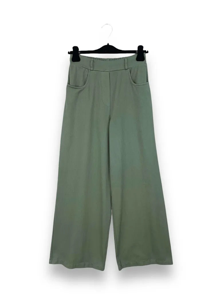 Descrizione Pantalone a palazzo in denim con elastico retro vita