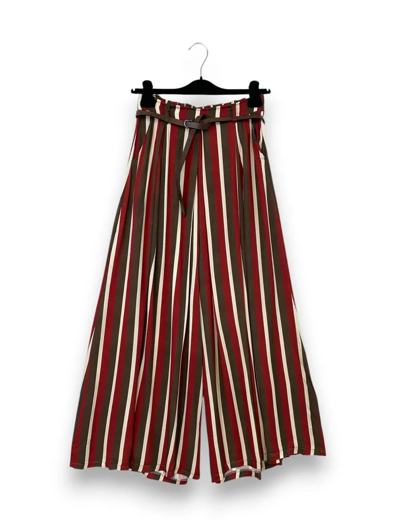 Descrizione Pantalone a palazzo con piega davanti in fantasia rigata