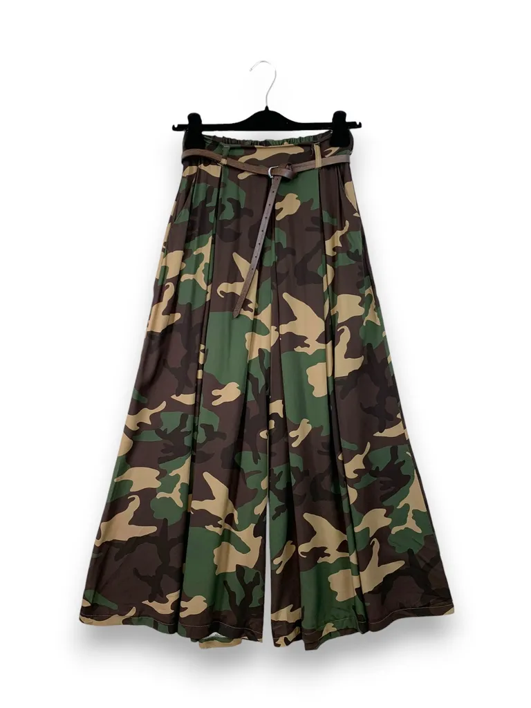 Descrizione Pantalone a palazzo con piega davanti mimetico