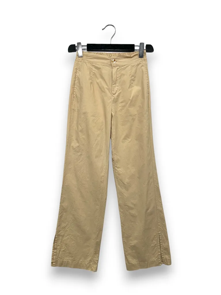 Descrizione Pantalone a palazzo in cotone leggero, elastico retro vita e spacco al fondo