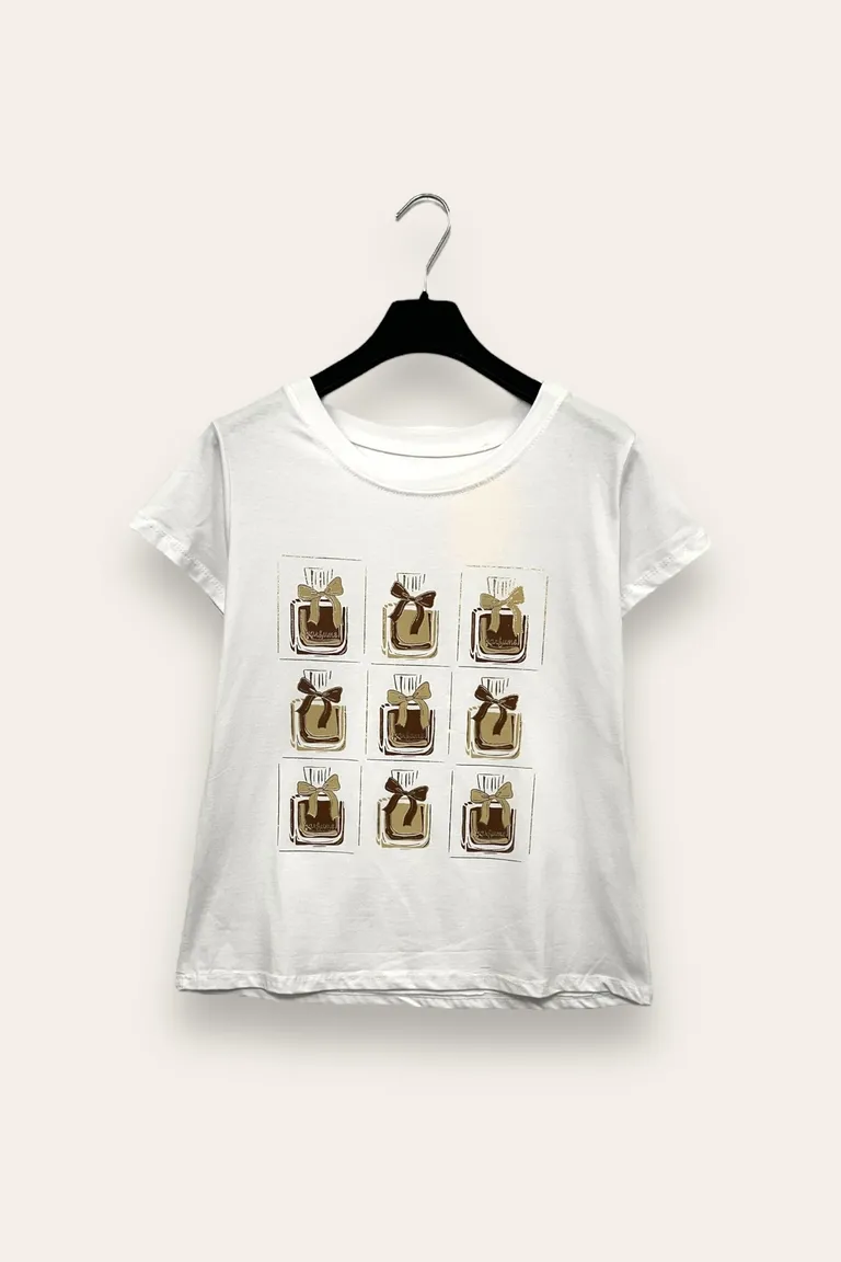 T-shirt con stampa profumi
