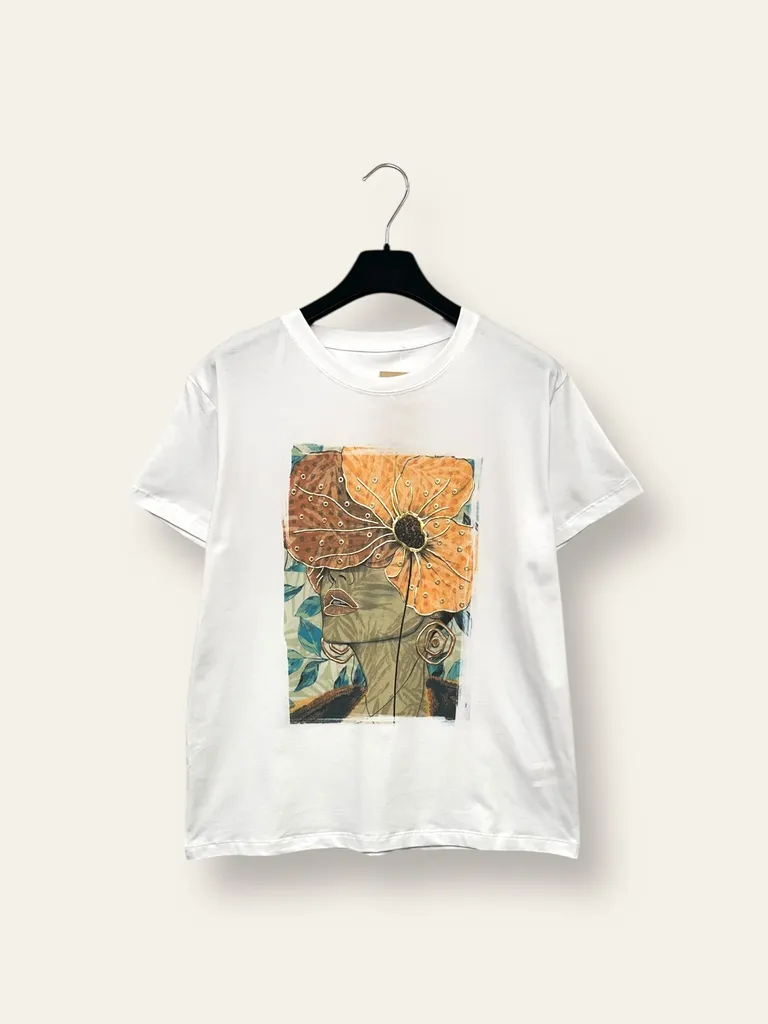T-shirt stampa volto con fiore