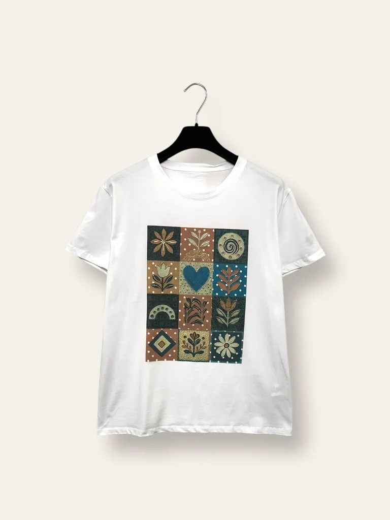 T-shirt stampa riquadri in fantasia