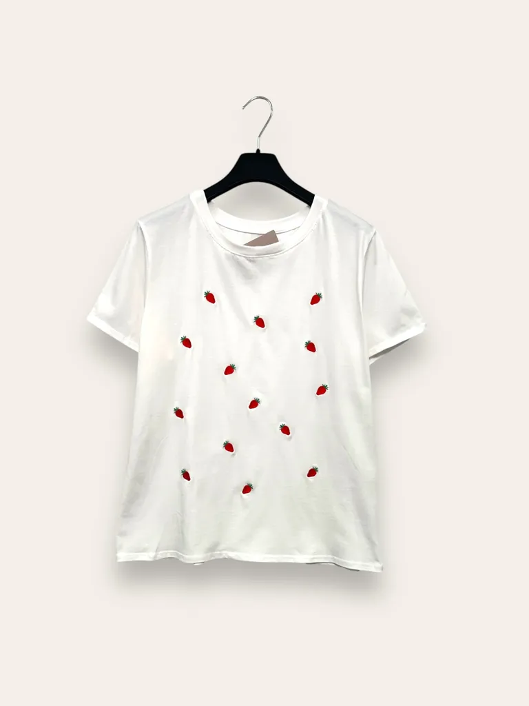 T-shirt con fragole ricamati