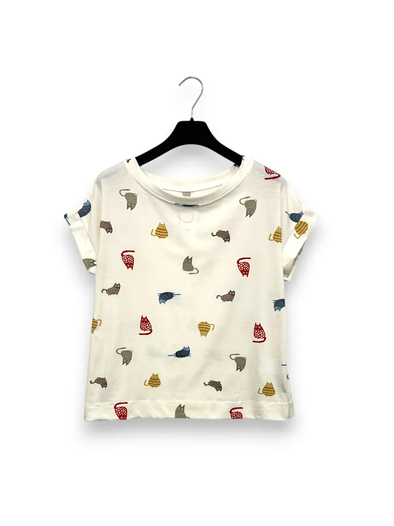 T-shirt a scatola fantasia gatti