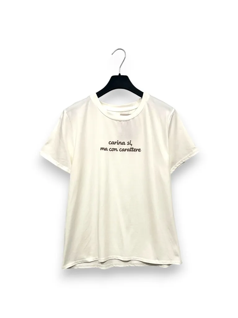 Descrizione T-shirt con stampa gommata “carina si, ma con carattere”