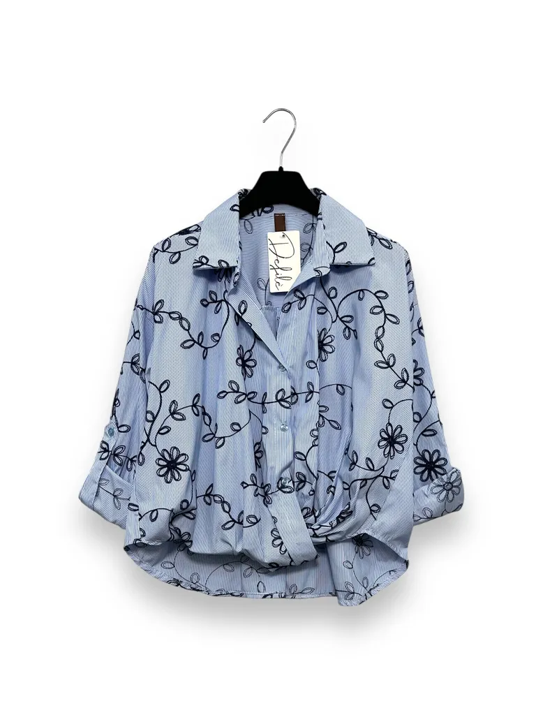 Camicia con ricami e nodo in vita