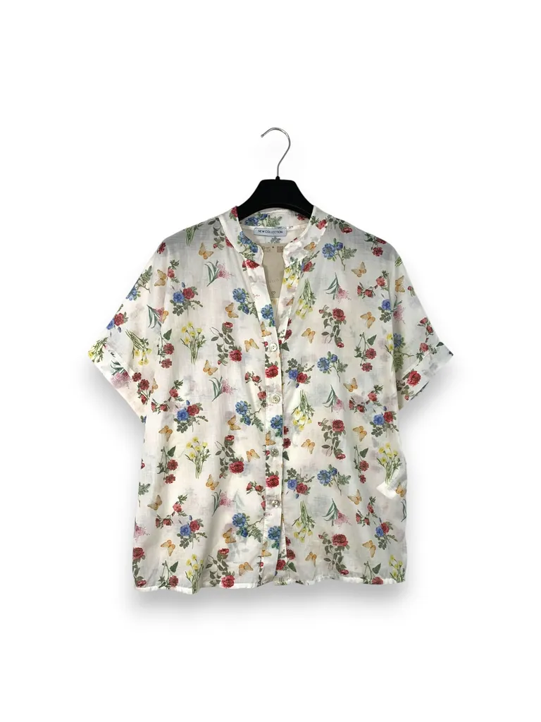 Camicia alla coreana manica corta in fantasia