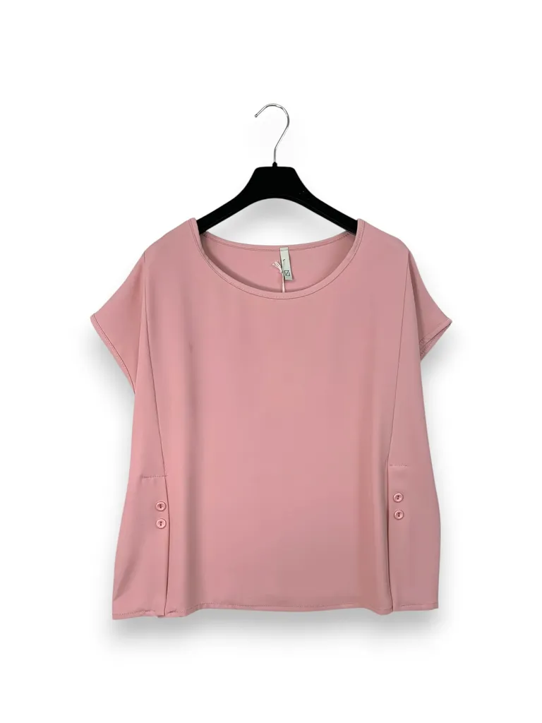 Description Blusa girocollo mezza manica con bottoni decorativi ai lati