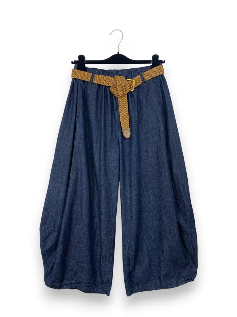 Description Pantalone ballon in chambray con elastico in vita