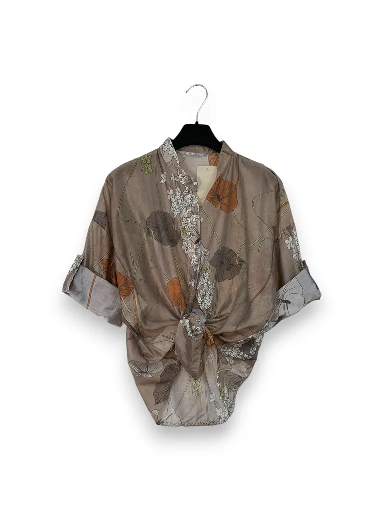 Description Camicia alla coreana misto tencel in fantasia