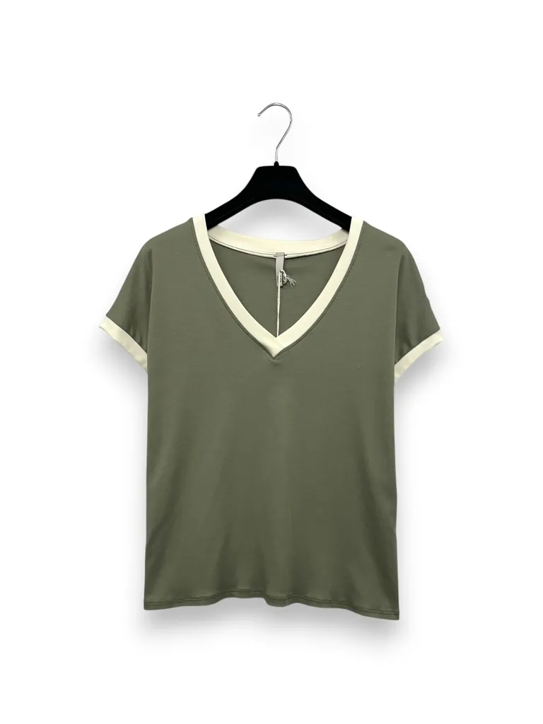 T-shirt scollo a V con profili a contrasto