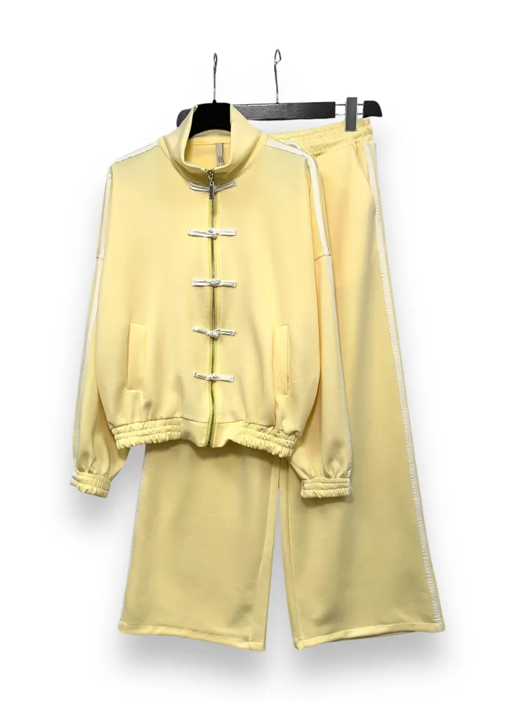 Description Completo tuta pantalone a palazzo e felpa con zip e chiusura orientale