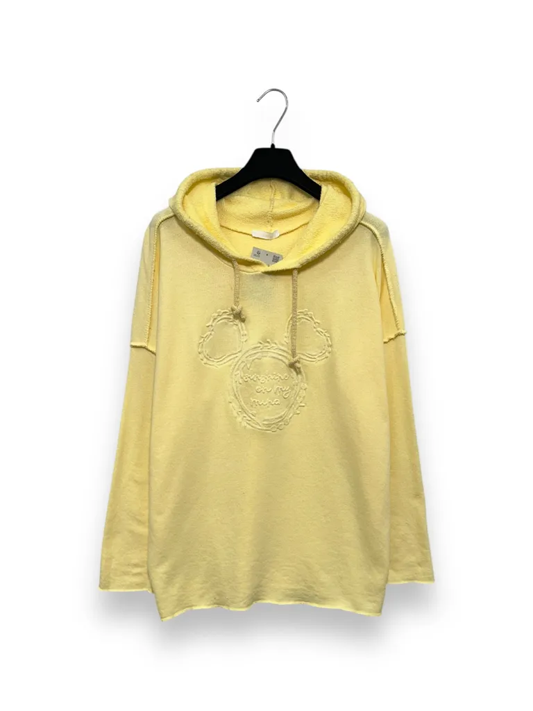 Descrizione Felpa over in maglia con scritta e disegno in rilievo, con cappuccio