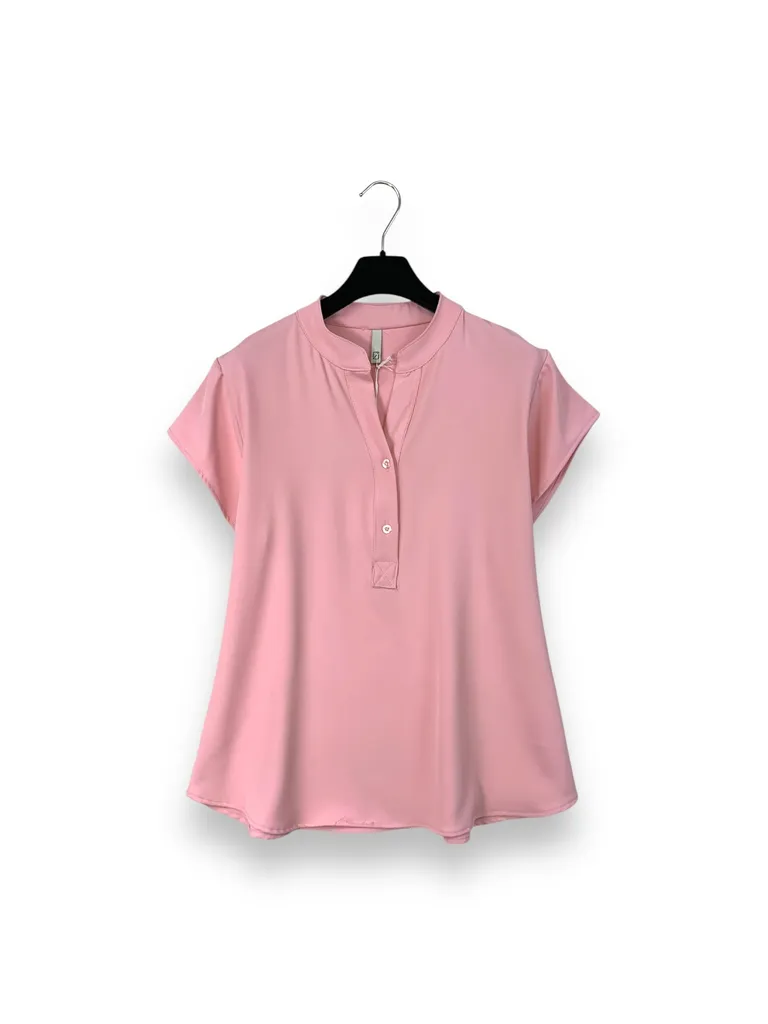 Descrizione Blusa alla coreana con bottoni sul petto, in tessuto fluido